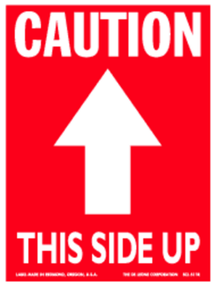Clarify the orientation your packages are meant to ship in with these Arrow Labels to ensure that your shipments arrive safely to their destination. These "Caution This Side Up" rectangle labels are paper with permanent pressure sensitive adhesive on the back. Labels are packaged and sold in quantities of 1000 (2 Rolls of 500).